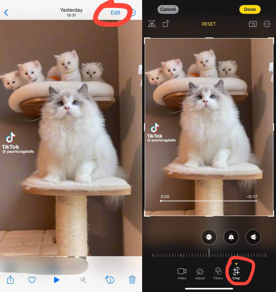 Luckily, iOS has a built-in function for cropping videos that you can easily access from your Photos app, similar to MacOS in the previous part. The process is very easy and straightforward and works for both iPhone and iPad: