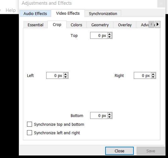 - Select the Video Effects tab, then the Crop tab.