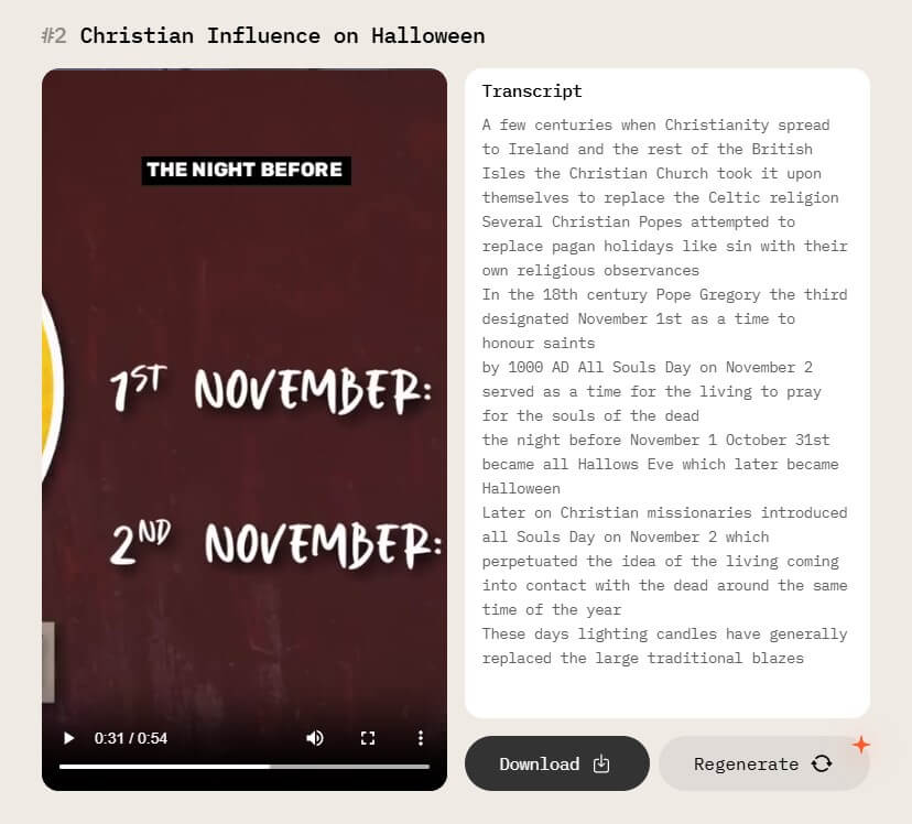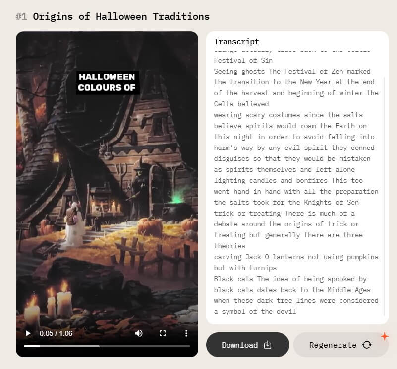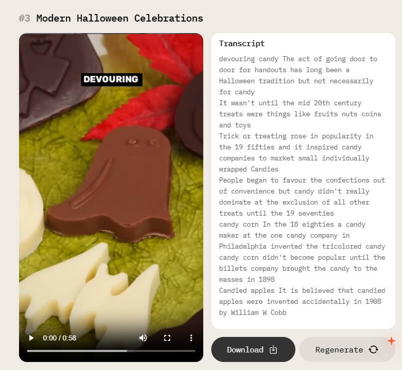 Enjoy your results! You will get the chosen number of clips that you can later regenerate if you wish.