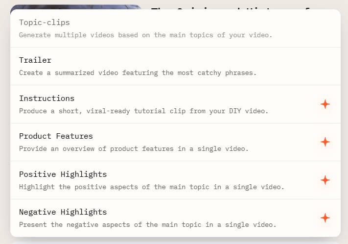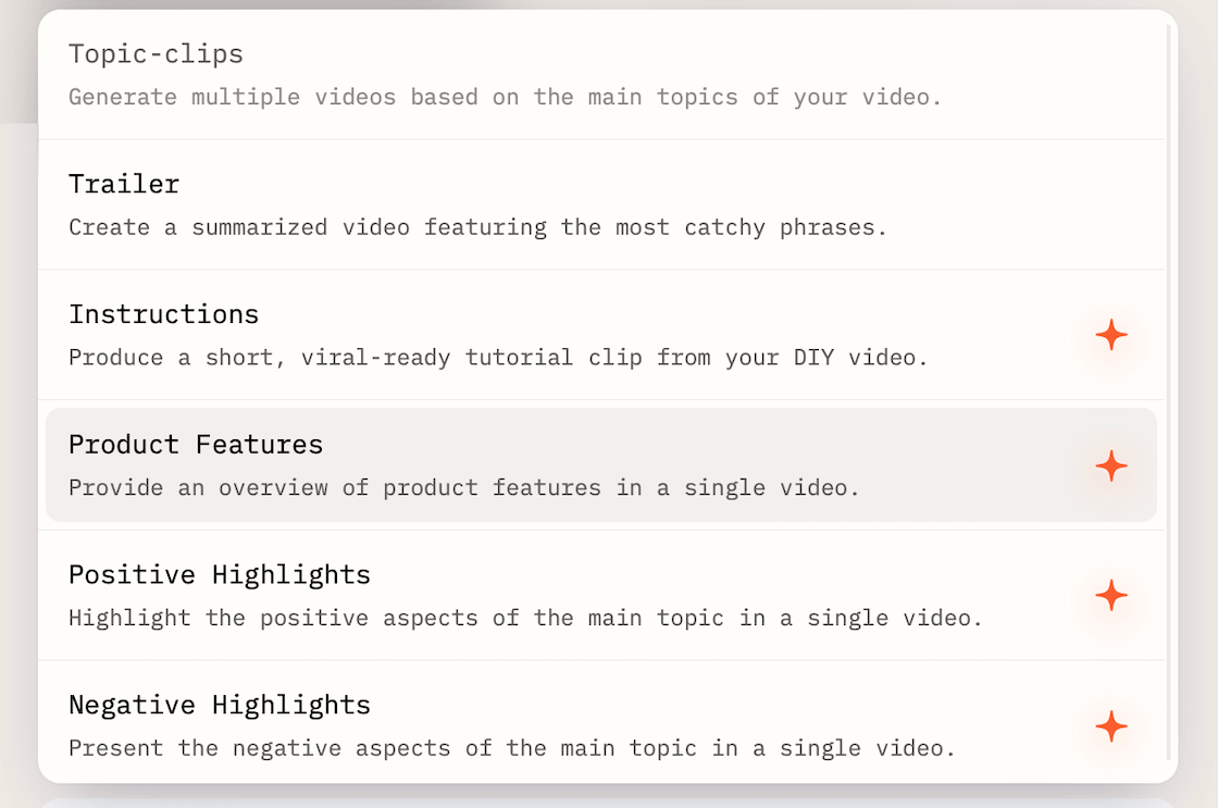 💡Good to know: If you want to learn more about AI Video Cut prompts collection and choose the one that fits your needs best, read our guide on how to find the best prompt for your content goals!