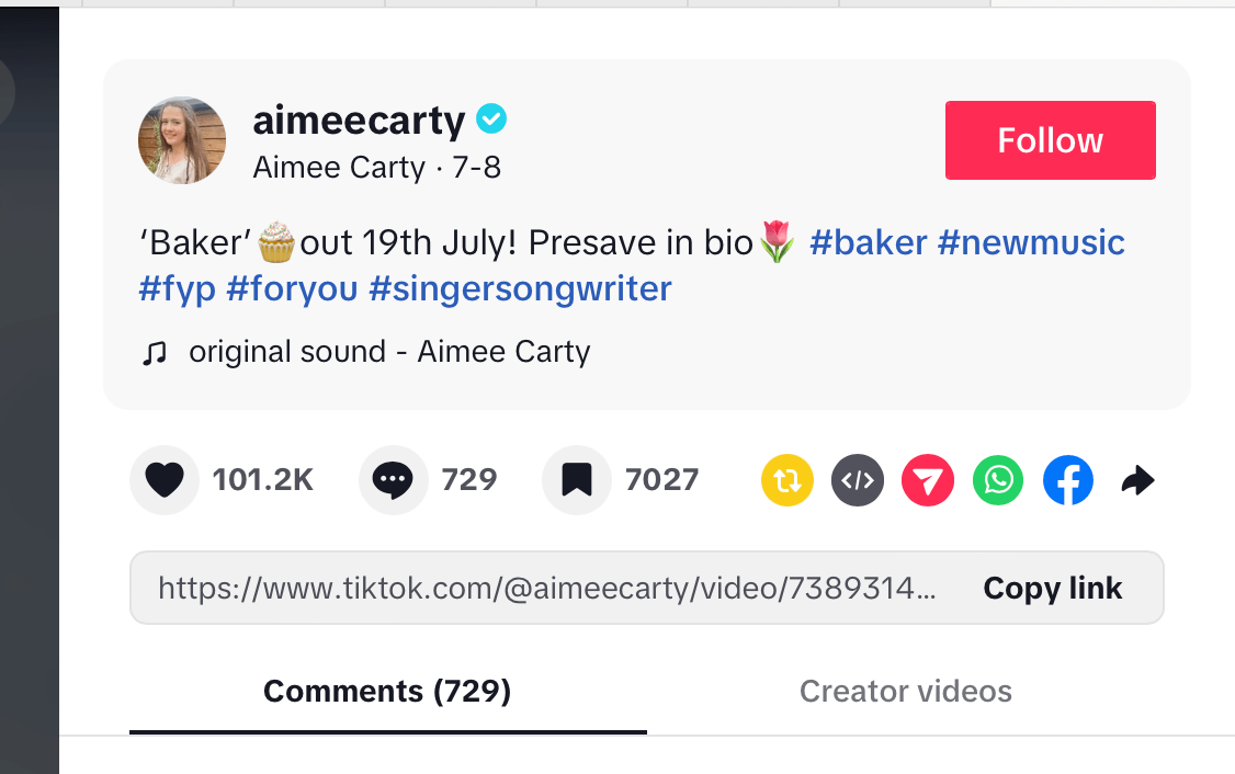 - Pay attention to which hashtags are used in the top videos. You will later need these insights to include in your own clips for maximum reach.